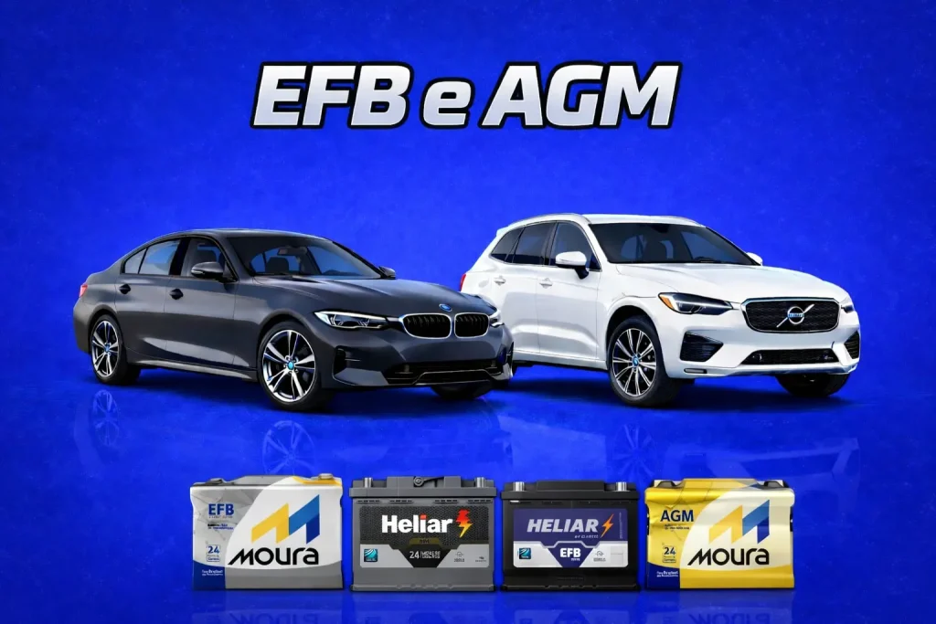 Temos a linha completa de baterias com a tecnologia AGM e EFB para veículos nacionais e importados com sistema start stop.